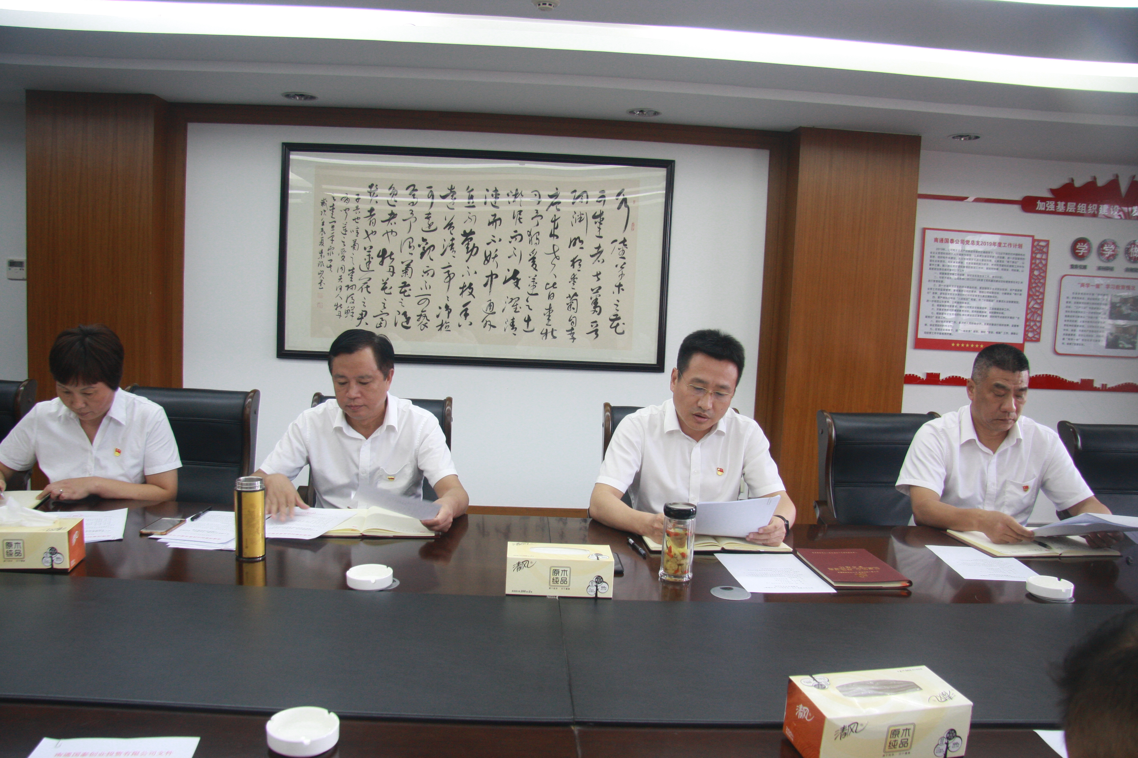 會上,黨總支書記沈利宣讀了《關(guān)于成立國泰公司“不忘初心,牢記使命”主題教育領(lǐng)導(dǎo)小組及辦公室的通知》,明確領(lǐng)導(dǎo)小組和主題教育具體實施部門。黨總支委員張志華宣讀了《關(guān)于國泰創(chuàng)投開展“不忘初心、牢記使命”主題教育實施方案》,副書記黃樹炎對此次主題教育具體工作進行安排部署。
