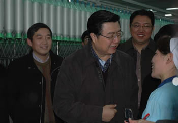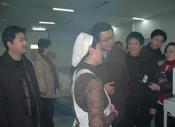 帶著市委、市政府的親切關(guān)懷,市委書記羅一民在有關(guān)部門、產(chǎn)控集團負(fù)責(zé)人陪同下來到企業(yè)一線慰問,他一邊察看企業(yè)生產(chǎn)情況,一邊與職工親切交流。生產(chǎn)組長朱玉玲顧不上擦臉上的汗,她笑著告訴羅書記:“企業(yè)效益還不錯,雖然忙了點,但干得高興,我們上下一條心,一定把這個企業(yè)建設(shè)得更好。”對職工們高漲的工作熱情,羅一民高興地蹺起大拇指。他動情地說,我們每次走訪困難企業(yè),既是慰問也是學(xué)習(xí)。許多困難企業(yè)的領(lǐng)導(dǎo)班子奮發(fā)進(jìn)取、默默奉獻(xiàn),這正是新時期南通精神的具體體現(xiàn),也是企業(yè)危中搶機、生存發(fā)展的最大動力源泉。他祝愿在新的一年,企業(yè)全體干部職工繼續(xù)齊心協(xié)力,取得更好的發(fā)展成果。他還要求隨同慰問的經(jīng)貿(mào)委、總工會等部門同志,多關(guān)心困難企業(yè)和困難職工,切實為他們解決實際困難。