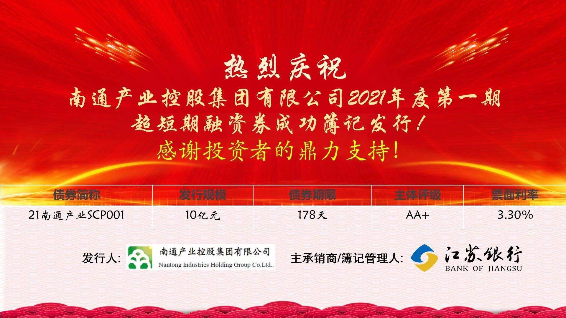 20212 22 產(chǎn)控集團(tuán)成功發(fā)行10億元超短期融資券。產(chǎn)控集團(tuán)的良好資質(zhì)得到投資者的認(rèn)可,10億元資金于下午點(diǎn)已滿額募集到位,最終簿記倍數(shù)1.43,票面利率3.3%,比當(dāng)日估值40BP