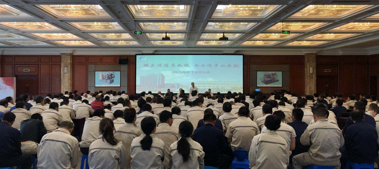 最后,總經(jīng)理來逢政在大會(huì)上發(fā)表講話,首先肯定了自公司成立以來,從最初的組建走向成熟所取得的進(jìn)步及成績(jī),他指出公司在2020年市場(chǎng)大環(huán)境惡劣的情況下還能逆勢(shì)發(fā)展與公司每一位員工的努力付出密不可分。今年公司面臨的內(nèi)外部市場(chǎng)交付壓力更大,對(duì)生產(chǎn)效率、服務(wù)質(zhì)量也提出了更高的要求,與此同時(shí)也伴隨著更大的發(fā)展?jié)摿蜋C(jī)會(huì),公司上下要擰成一股勁,保質(zhì)保量的按時(shí)交付訂單,提升公司的生產(chǎn)規(guī)模,穩(wěn)定生產(chǎn)車間的產(chǎn)值效益,提高職工收入水平,讓每位員工獲得發(fā)展機(jī)會(huì),和金通靈共同成長(zhǎng)。