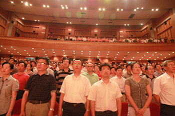 6月30日下午,產(chǎn)控集團召開“七一”紀念表彰大會暨大型文藝匯演活動。集團所屬20家黨組織、近千名黨員參加活動,回顧黨的光輝歷程和“十一五”發(fā)展成果,以昂揚的歌聲表達對黨的熱愛。市國資委李桂順主任、市委組織部宋建宏處長應邀出席,集團黨委副書記徐憲華主持大會。