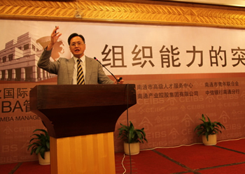 9月7日下午,中歐國際工商學院高層管理論壇在通舉行,400多位南通商界高管到場,聆聽中歐國際工商學院副教務長、飛利浦人力資源管理教席教授楊國安博士的精彩演講——《組織能力的突破》。南通市高級人才服務中心及南通產(chǎn)業(yè)控股集團有限公司等六家單位參與合辦此次論壇。 在 短短一小時的主題演講中,楊國安教授談到“企業(yè)基層搞作業(yè)、中層做管理、高層謀經(jīng)營。所謂經(jīng)營者,一則制定戰(zhàn)略規(guī)劃,二則培養(yǎng)組織能力,二者缺一不可”。 他從確立員工能力,塑造員工思維,改進員工治理三方面闡述如何建立企業(yè)所需的組織能力;對處于不同發(fā)展周期的企業(yè)給出相應建議,指出通過必要的組織變革配 合戰(zhàn)略轉(zhuǎn)型,提高團隊整體戰(zhàn)斗力的重要性。 作為世界華人杰出管理大師之一、國際公認的人力資源管理權威,楊國安教授取得的成果不僅限于理論層面,他還同時擔任多家知名公司顧問,成功幫助宏基、騰訊等 公司實現(xiàn)人力資源、組織能力的戰(zhàn)略轉(zhuǎn)型。理論的高屋建瓴和實踐的腳踏實地,使得楊教授的理念簡明實用,具有很強的指導性和操作性。多年的研究精華凝聚在一 個下午,給與會高層職業(yè)經(jīng)理人提供了一個難得的學習機會。通過楊教授的演講及與經(jīng)理人的互動交流,大家對組織能力的概念和對企業(yè)發(fā)展的重要性都有了更深的 認識和理解。 集團領導、本部全體員工和投資企業(yè)高管參加了本次論壇。