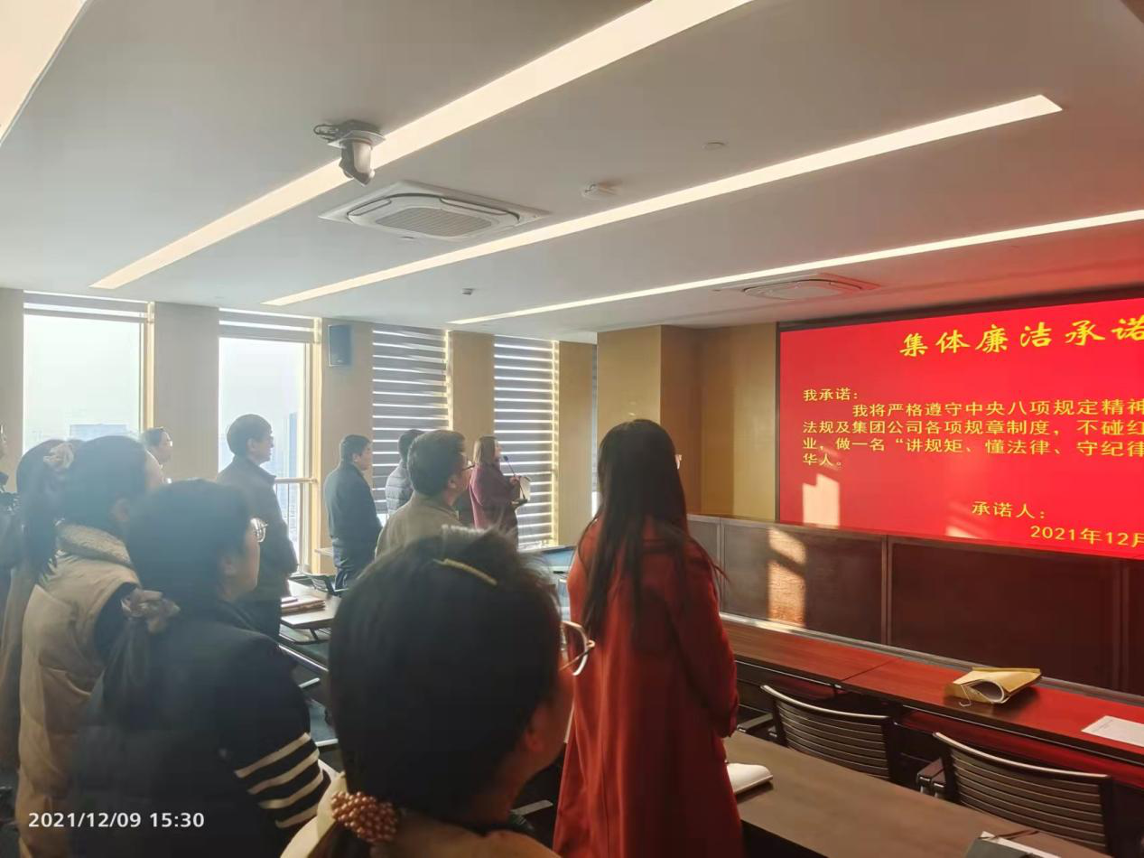 “我承諾:我將嚴(yán)格遵守中央八項(xiàng)規(guī)定精神,國(guó)家法律法規(guī)及集團(tuán)公司各項(xiàng)規(guī)章制度,不碰紅線,廉潔從業(yè),做一名“講規(guī)矩、懂法律、守紀(jì)律”的合格精華人。”一句句錚錚諾言,鏗鏘豪邁,在精華制藥集團(tuán)股份有限公司大會(huì)議室內(nèi)響徹天地!原來(lái)這是精華制藥集團(tuán)黨委副書(shū)記、紀(jì)委書(shū)記、工會(huì)主席曹燕紅在領(lǐng)著大家一起開(kāi)展集體廉潔承諾活動(dòng)。