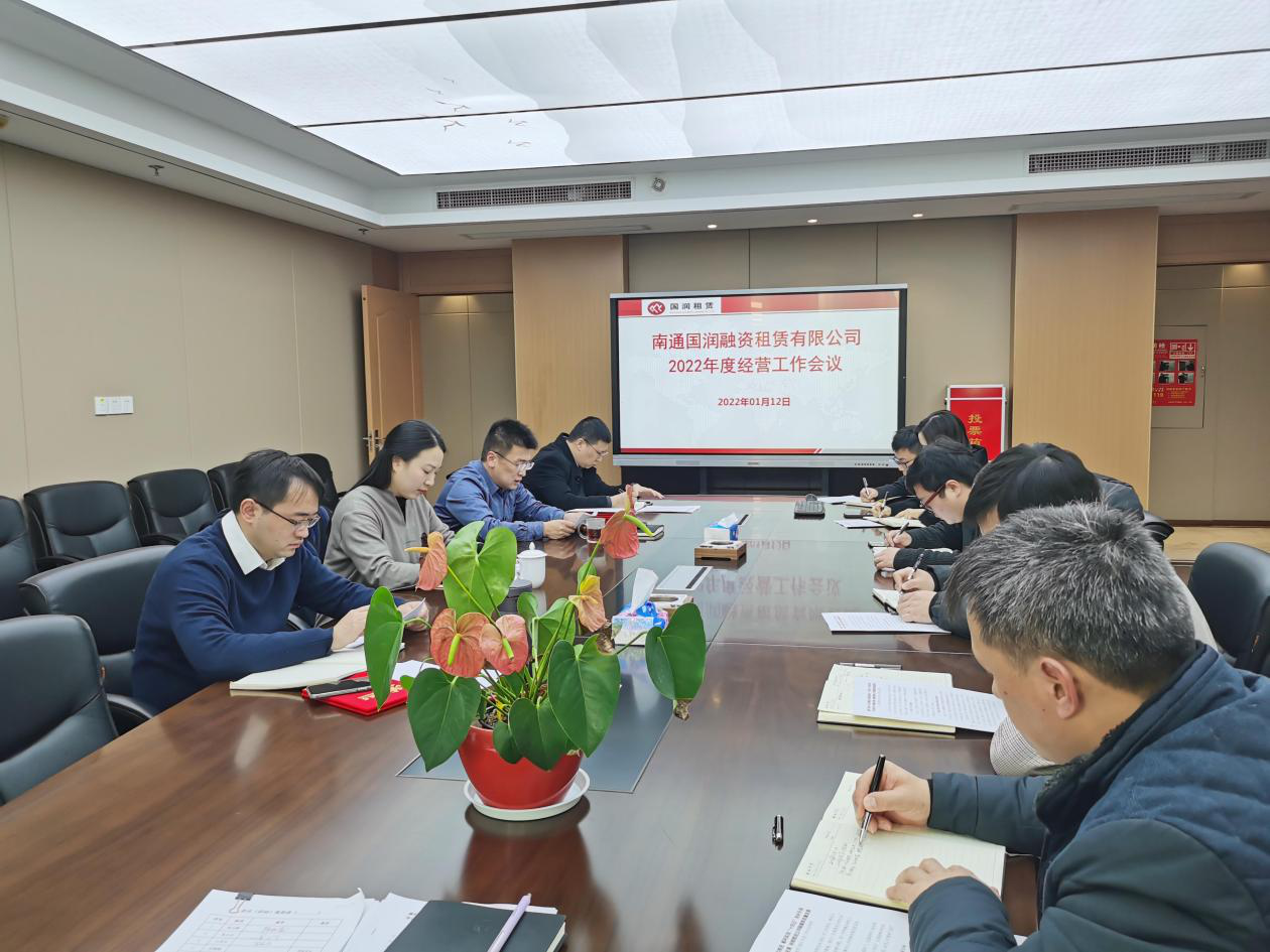 2022年1月12日,為全面復(fù)盤2021年度經(jīng)營目標(biāo)完成情況,有效落地2022年各項(xiàng)工作計(jì)劃,南通國潤融資租賃有限公司在大會議室召開了2022年度經(jīng)營工作會議。產(chǎn)控集團(tuán)副總經(jīng)理陳弘穎,國潤租賃董事長陳大鵬、總經(jīng)理陸健、黨支部副書記吳小兵及公司全體員工,參加了會議。